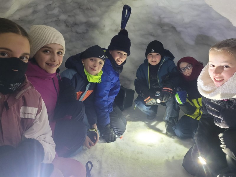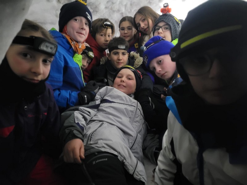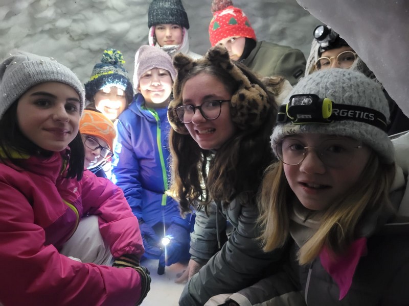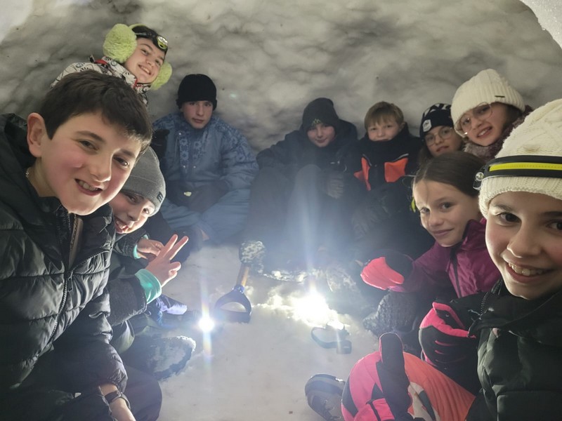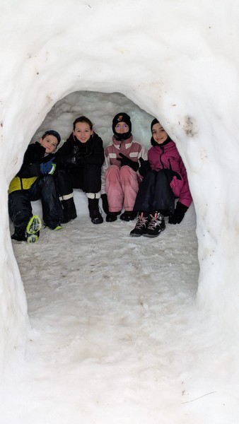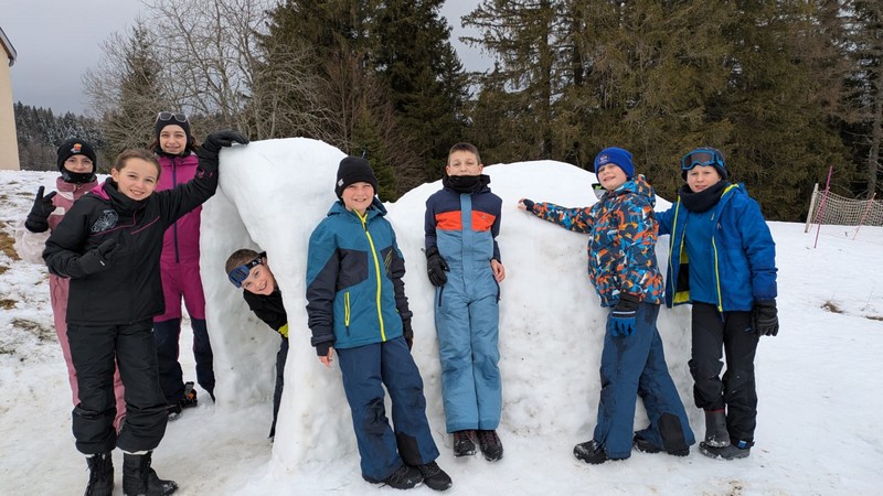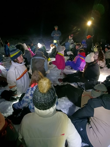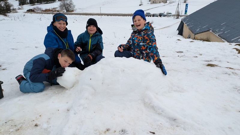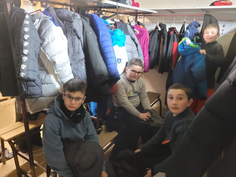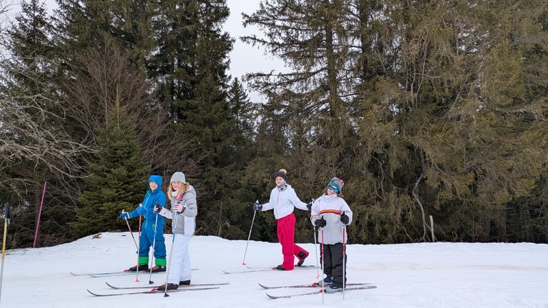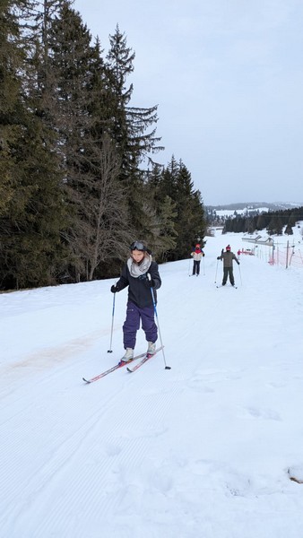 La soirée d’hier soir s’est clôturée par la rando nocturne, profitant ainsi d’un ciel bien dégagé. Ce ne fut pas le cas ce matin où la grisaille était présente. Cela s’est traduit par quelques flocons bien humides le matin, suivis de quelques gouttes d’eau l’après-midi. La bonne surprise fut de trouver des pistes de fond damées, ce qui a pu faciliter la tâche de nos apprentis skieurs.