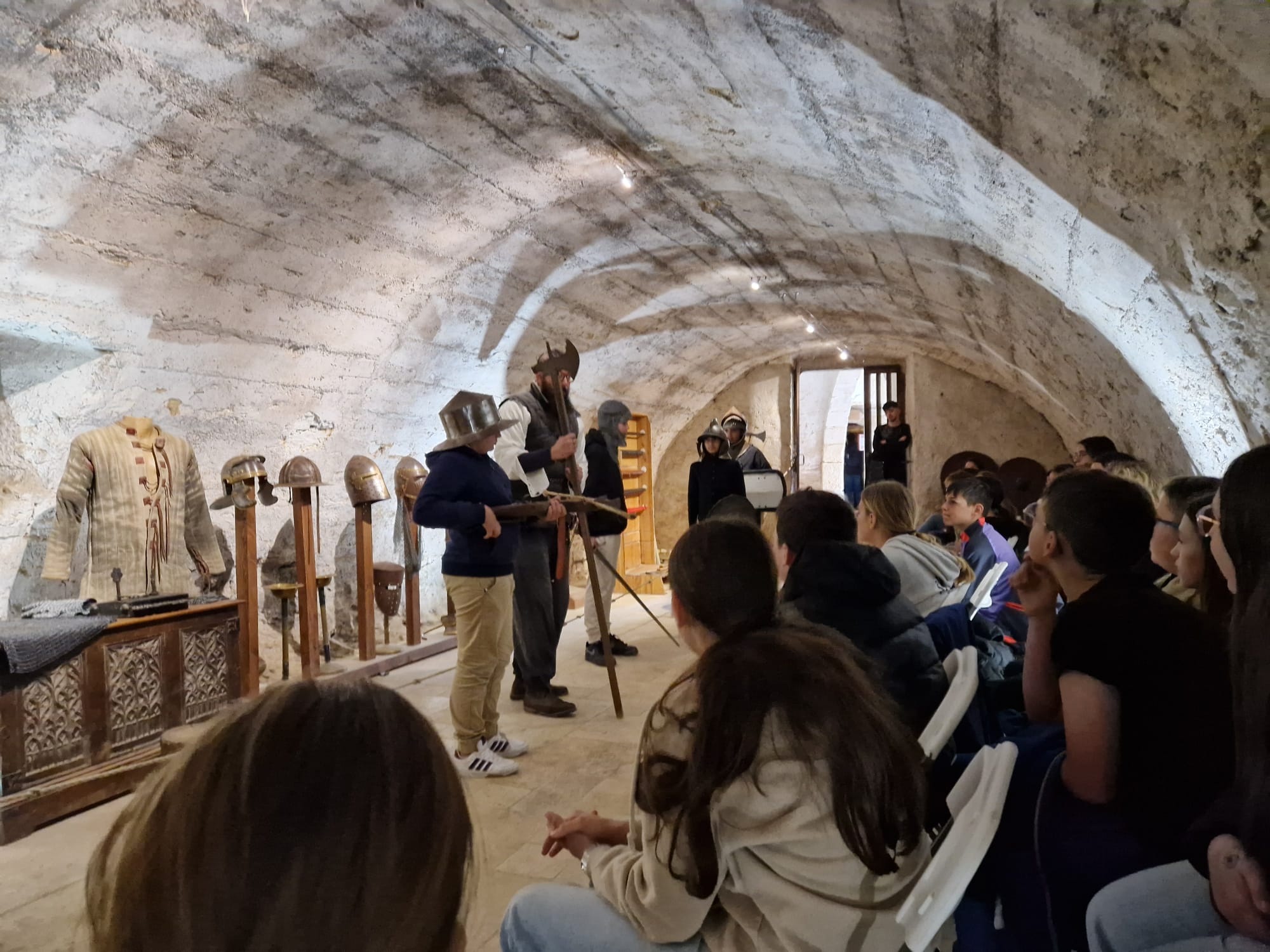 La matinée fut consacrée à la visite guidée du château. Les élèves ont ainsi découvert l’impressionnant châtelet d’entrée, le four à pain, les écuries, la chapelle, la salle des armes, la salle des gardes et la prison…